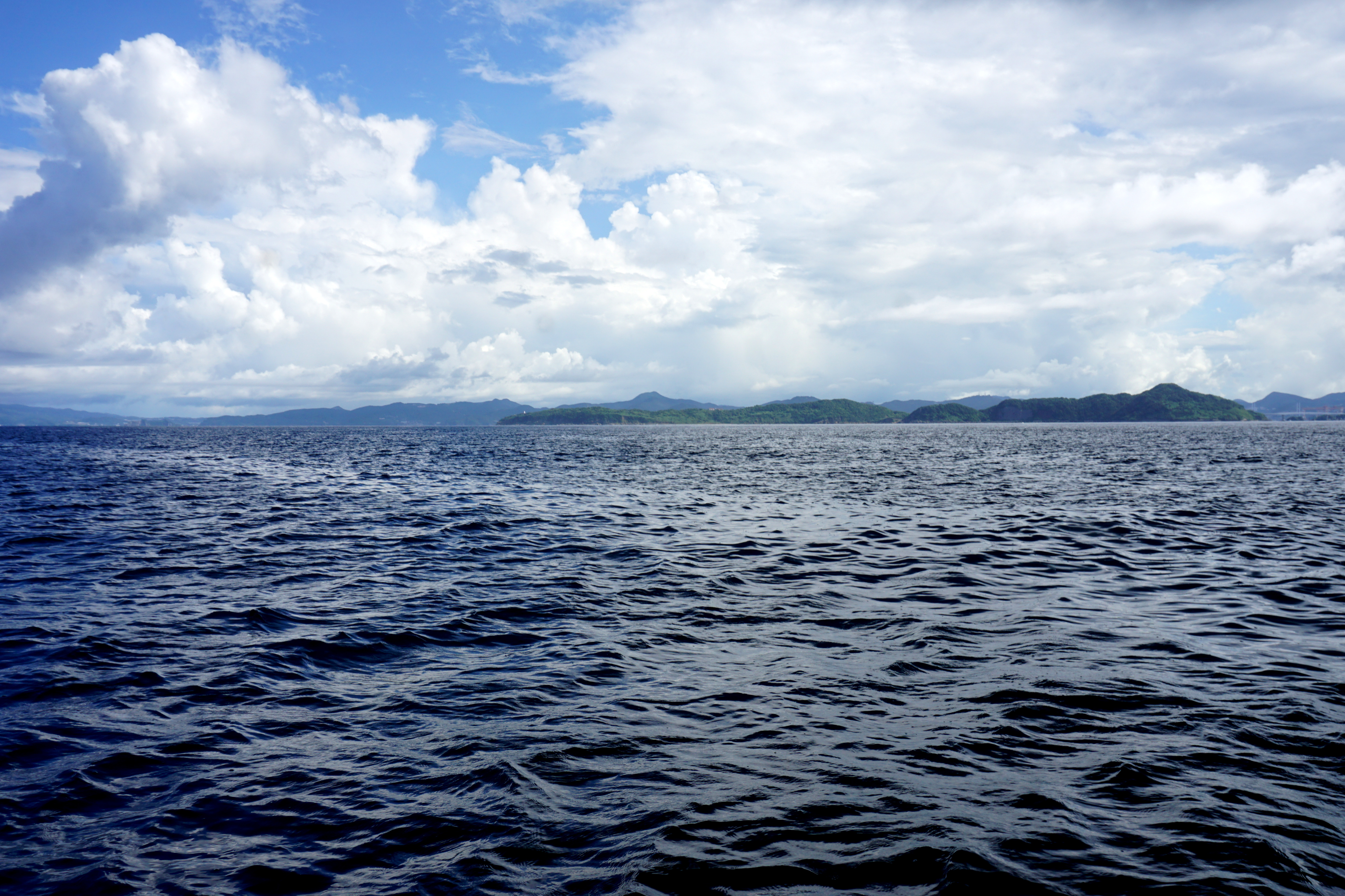 風が強く潮が速かったので80gの重りにしても100mほどラインが出てほとんど釣りに成らない状態が続きます。一度は、風を避けるために、高島の釣り公園の前まで移動してみました。