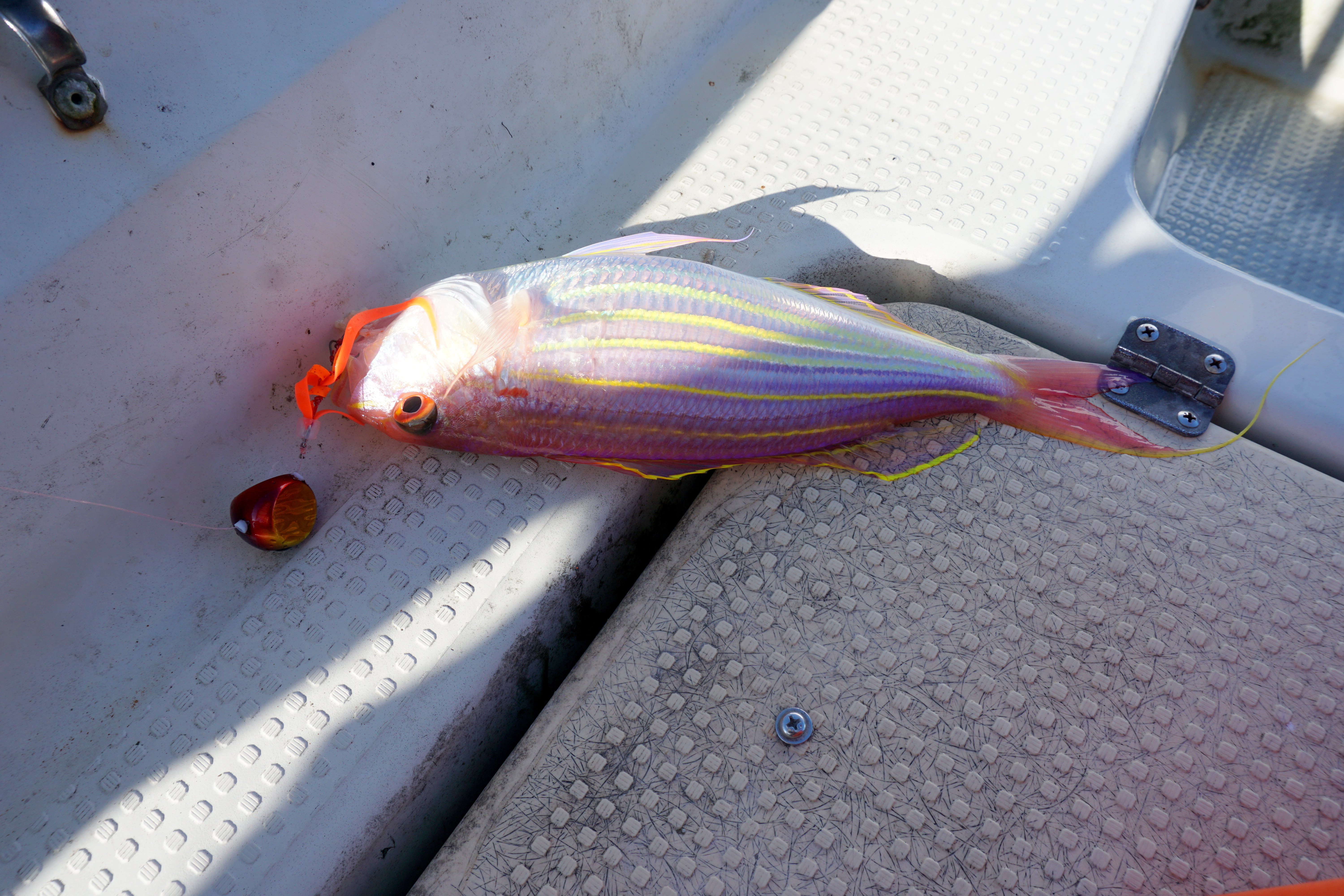 9:45 雨が止んで、潮も風も緩くなって60gの重りで底が取れるように成ってヒット。